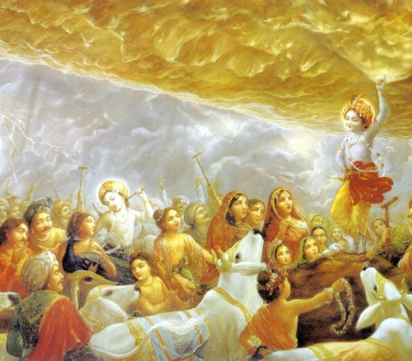 Govardhan Puja is celebrated in commemoration of the fascinating pastime of Lord Krishna’s lifting the Govardhana hill to protect the